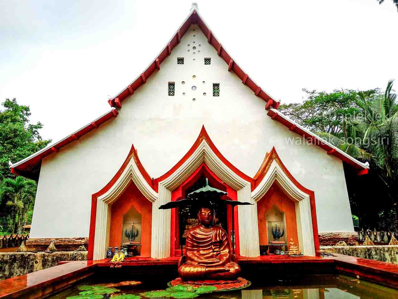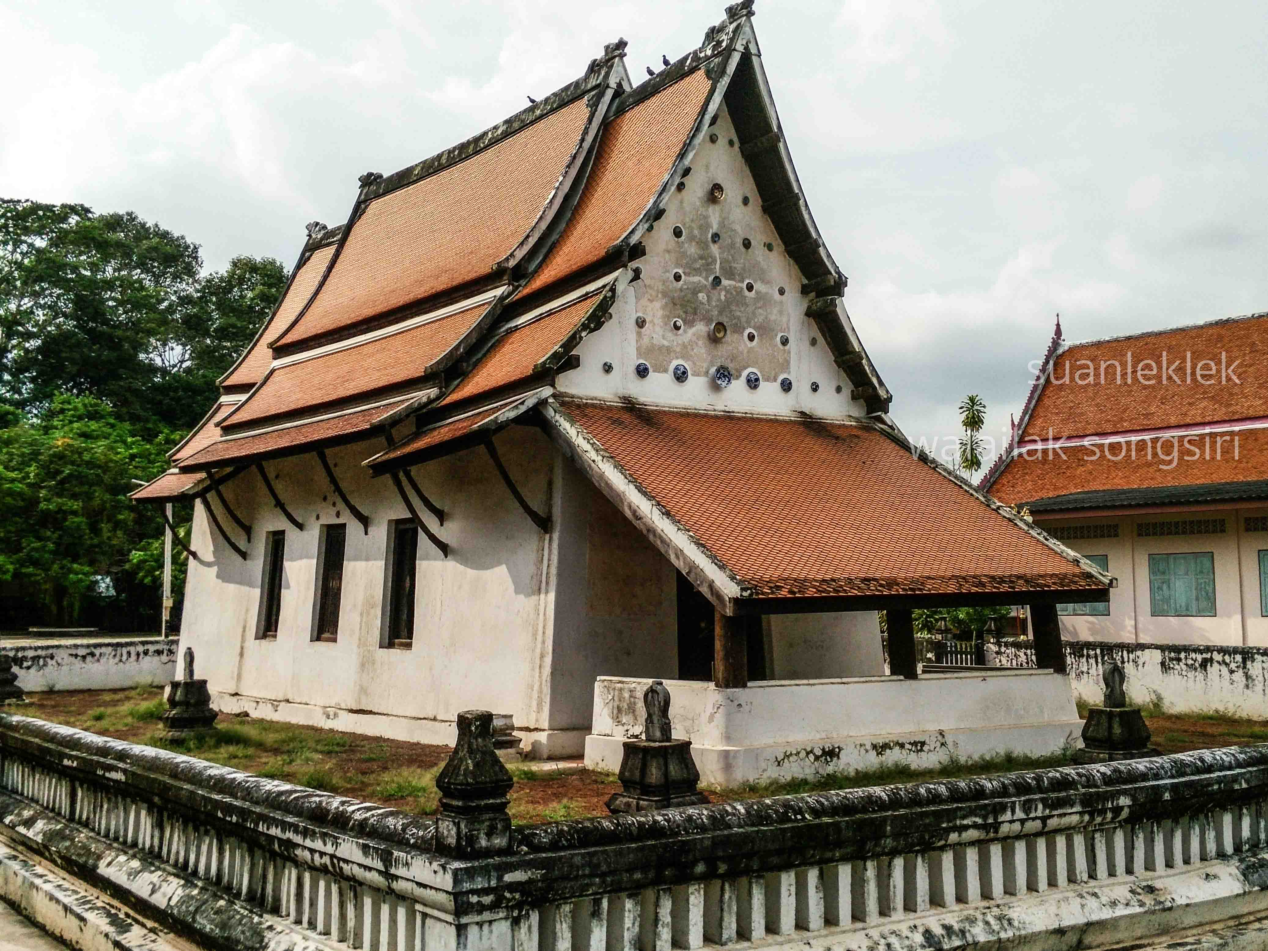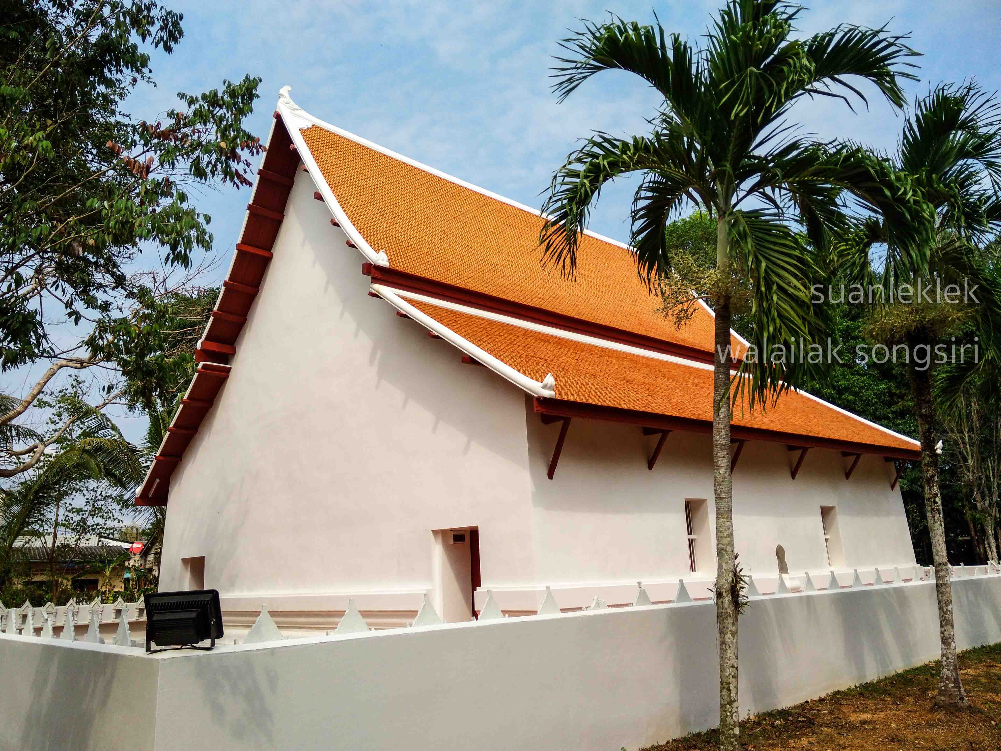 ภาพซ้าย พระอุโบสถแบบเมืองระยองและส่วนที่ต่อกับเมืองจันทบูร วัดบ้านแลง อำเภอเมือง จังหวัดระยอง