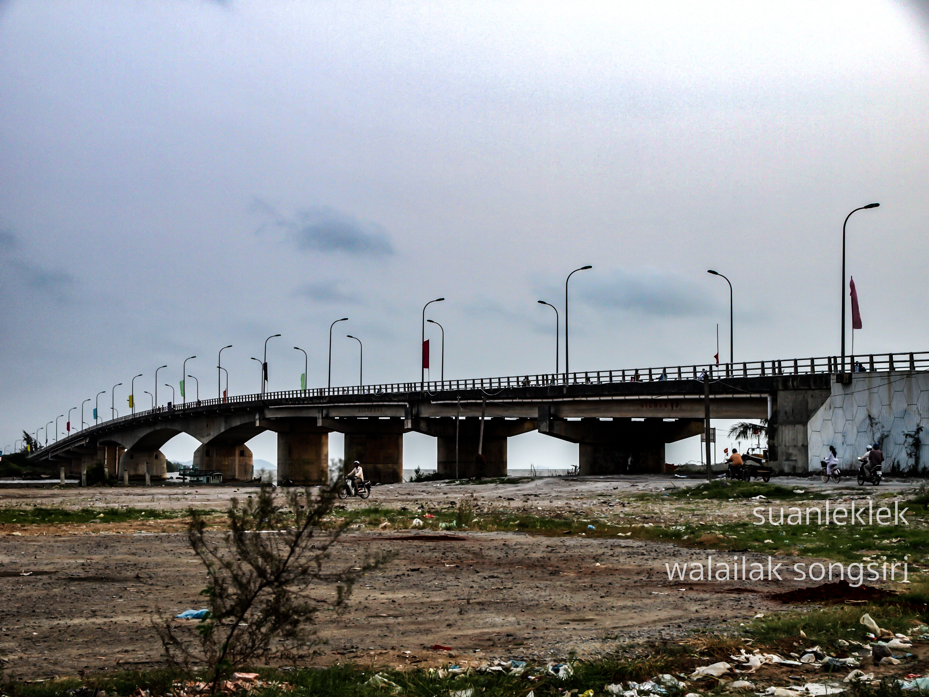 บรรยากาศบริเวณชายหาดและสะพานข้ามปากอ่าวและท่าเรือเมืองฮ่าเตียนในปัจจุบัน