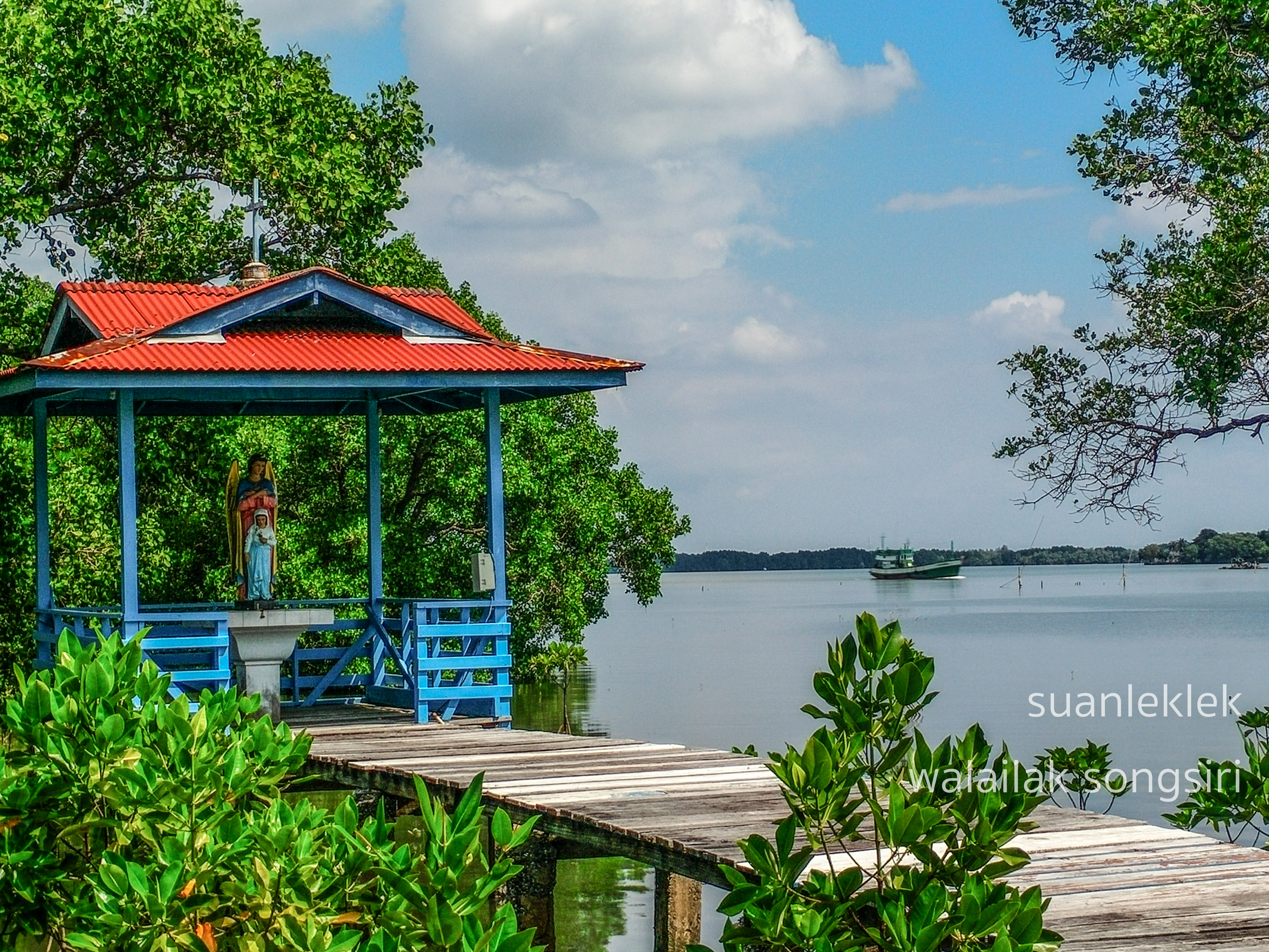ภาพซ้าย บริเวณแหลมประดู่และชุมชนแหลมประดู่ ซึ่งเป็นชาวจีนฮกเกี้ยนนับถือคริสต์ศาสนานิกายโรมันคาธอลิค เห็นพื้นที่บริเวณทางตะวันตกของบ้านท่าแฉลบ
