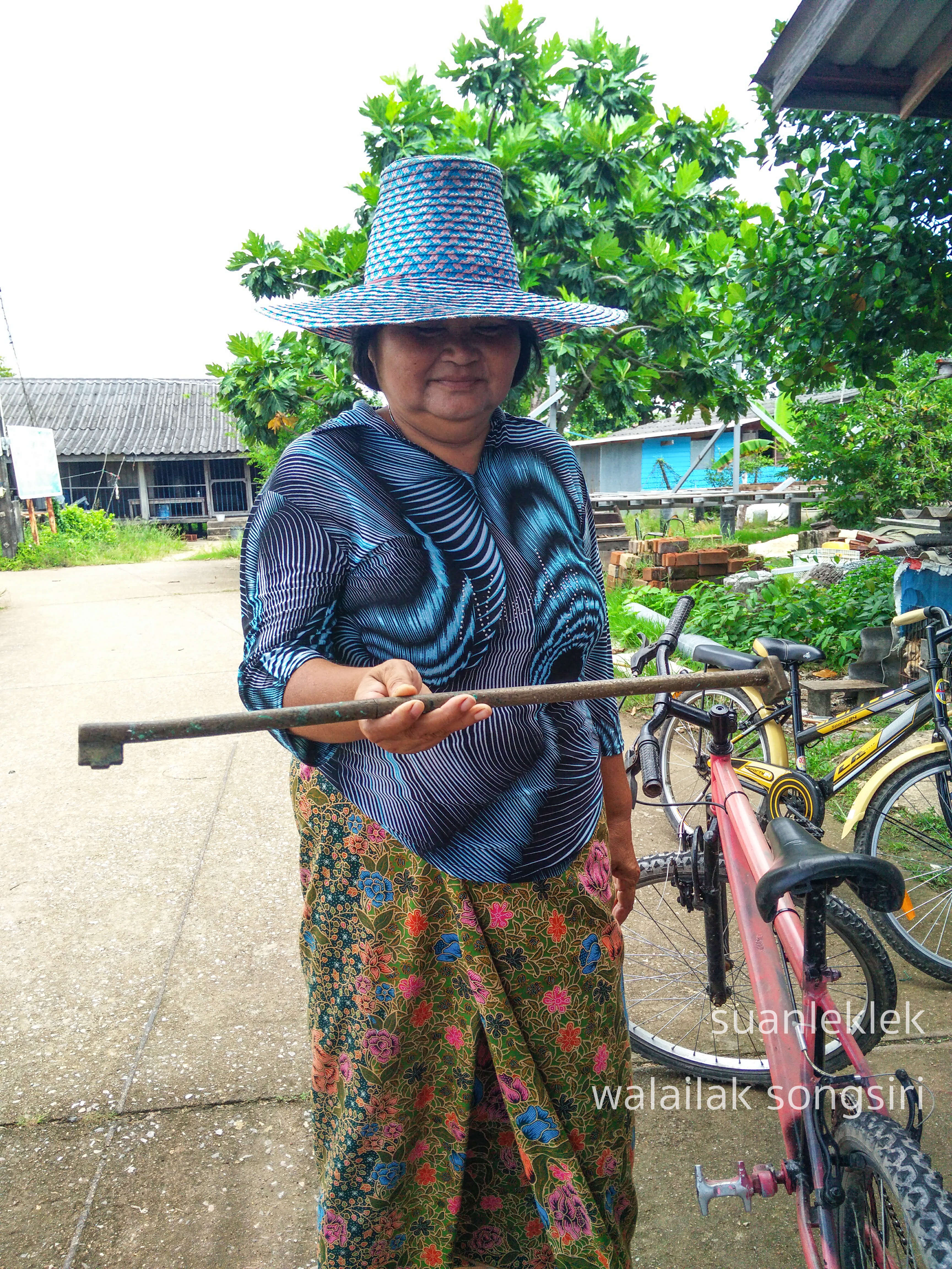 ภาพขวา. กลอนประตูจากอาคารศุลกากรแหลมประดู่เดิม ที่ชาวบ้านพบชายตลิ่ง
