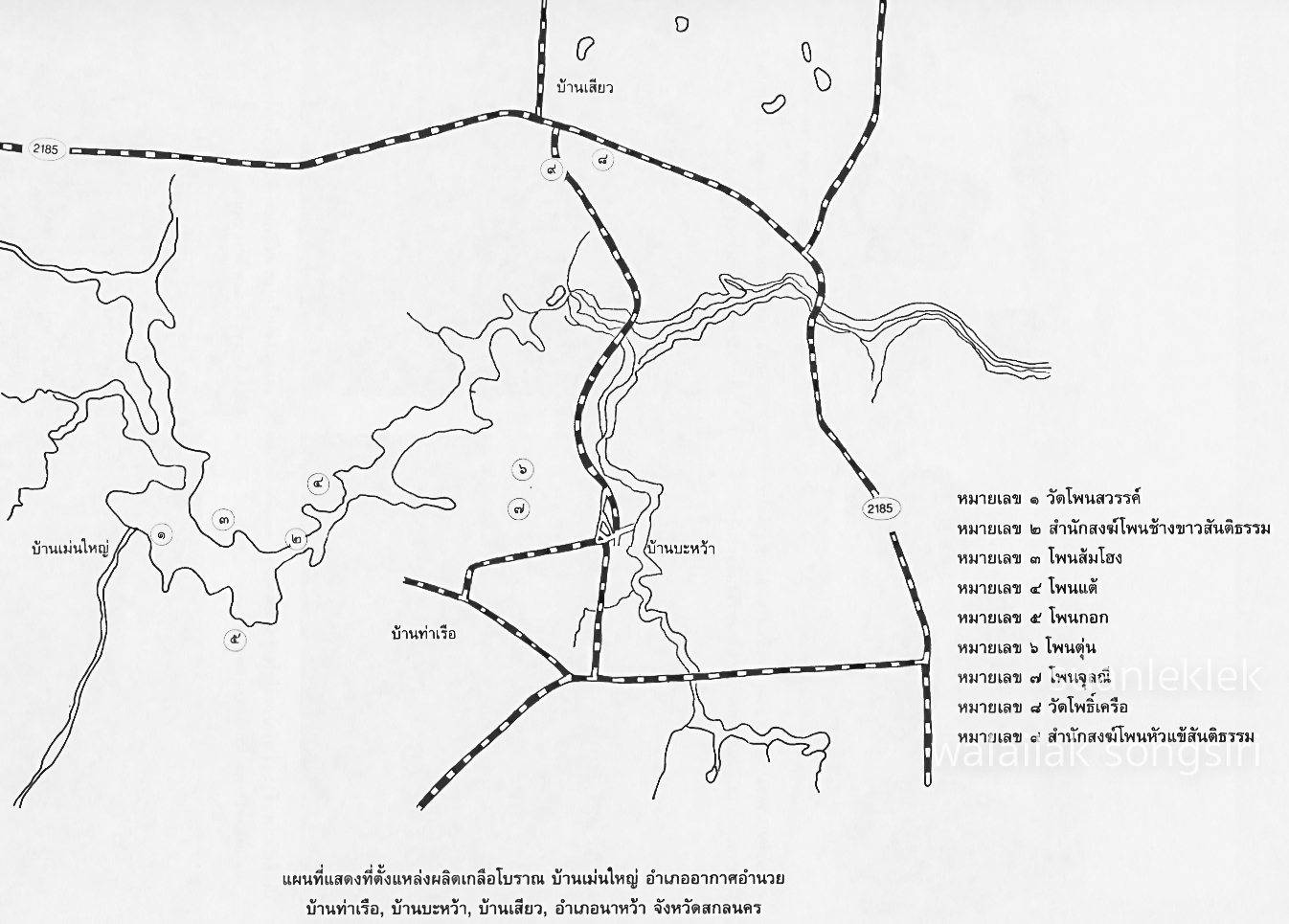 แผนที่แสดงที่ตั้งแหล่งผลิตเกลือโบราณ บ้านเม่นใหญ่ อำเภออากาศอำนวย บ้านท่าเรือ บ้านบะหว้า บ้านเสียว อำเภอนาหว้า จังหวัดนครพนม
