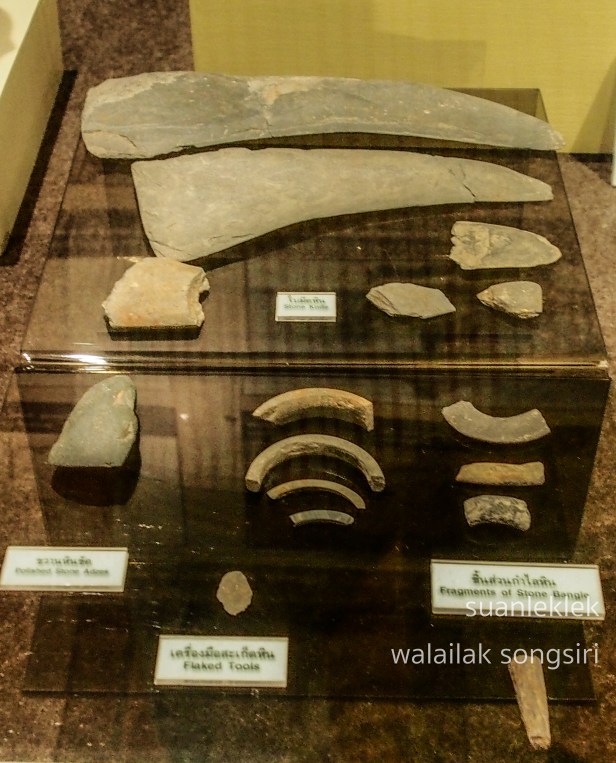 ๓. ส่วนในบริเวณที่ราบลุ่มตอนกลางในเขตลุ่มน้ำยมและลุ่มน้ำน่านพบแหล่งโบราณคดีที่ใช้เครื่องมือหินแบบพิเศษแตกต่างจากที่พบที่อื่นๆ และไม่พบว่ามีการใช้เครื่องมือหรือเครื่องประดับที่ทำจากโลหะแต่อย่างใด ได้แก่ แหล่งโบราณคดีที่ “บ้านบึงหญ้า” อำเภอคีรีมาศ จังหวัดสุโขทัย ซึ่งพบว่ามีการฝังศพแบบนอนเหยียดยาวและมีแผ่นหินลักษณะคล้ายใบมีดขนาดต่างๆ หรือจะเรียกว่าเคียวสำหรับเกี่ยวรวงข้าวหรือจะเป็นพืชชนิดอื่นๆ ก็ได้อุทิศให้ผู้ตาย มีการกำหนดอายุไว้คร่าวๆ ที่ประมาณ ๒,๐๐๐-๑,๕๐๐ ปีมาแล้ว