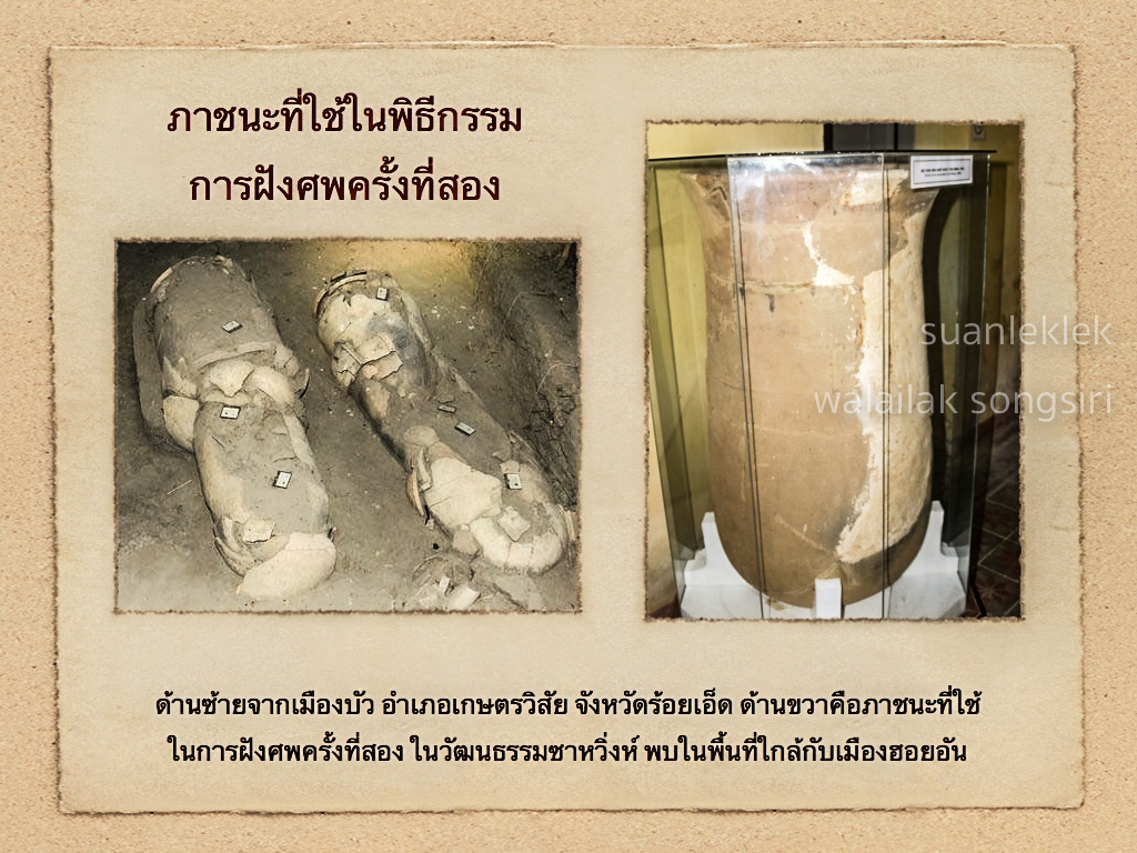 ประเพณีการฝังศพครั้งที่สองในแหล่งวัฒนธรรมสำคัญ ของภาคพื้นเอเชียตะวันออกเฉียงใต้มีช่วงอายุใกล้เคียงกัน และมีความสัมพันธ์ในรูปแบบทางวัฒนธรรมอย่างชัดเจน โดยมีการติดต่อกันในเส้นทางเดินทางที่สำคัญจากชายฝั่งทะเลสู่ภายในแผ่นดิน