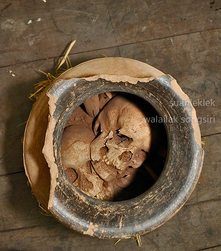 ประเพณีการบรรจุภาชนะใส่กระดูกในสถานที่ศักดิ์สิทธิ์ซึ่งเทียบได้กับการฝังศพครั้งที่สองนี้ กระจายทั่วไปในวัฒนธรรมยุคแรกเริ่มประวัติศาสตร์ของเอเชียตะวันออกเฉียงใต้ สืบเนื่องเรื่อยมาและพบเห็นได้จนถึงปัจจุบัน