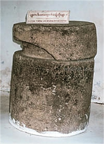 รูปแบบภาชนะฝังศพแบบที่มีฝาปิดและไม่มีฝาปิด ทำจากหิน พบใน วัฒนธรรมสมัยพยู่ พบที่เบคถะโน และ เมืองศรีเกษตร ทางตอนกลางของพม่า รูปทรงเป็นรูปทรงกระบอกกลม ส่วนใหญ่เป็นภาชนะมีฝาปิด แแต่ก็แทบไม่พบชิ้นส่วนของโครงกระดูกภายในเลย เพราะพบอยู่ใกล้กับโบราณสถานในทางศาสนาซึ่งบางชิ้นจะมีจารึกที่น่าจะทำขึ้นในยุคสมัยเดียวกัน สันนิษฐานว่า การทำการฝังศพครั้งที่สองนี้น่าจะเป็นวัฒนธรรมที่ต่อเนื่องมาจากสมัยก่อนประวัติศาสตร์ในช่วงยุคเหล็กที่แพร่หลาย พบโดยทั่วไปในเอเชียตะวันออกเฉียงใต้