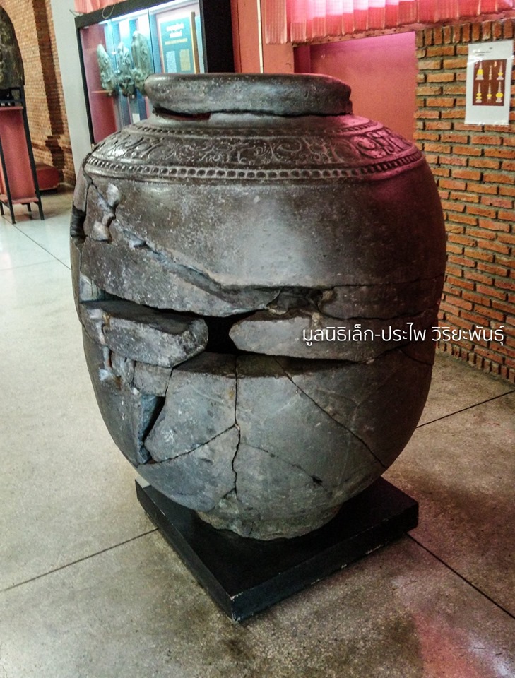 ในวัฒนธรรมทวารวดี เราพบภาชนะบรรจุเถ้าหรือกระดูกที่โดนเผาไหม้อยู่ตามฐานสถูปหรืออาคารสำคัญทางพุทธศาสนา ในชุมชนโบราณที่สืบเนื่องจากสมัยก่อนประวัติศาสตร์และเริ่มรับอิทธิพลทางพุทธศาสนาในลุ่มน้ำมูน-ชีหลายแห่ง เช่น ที่เมืองฟ้าแดดสงยาง จังหวัดกาฬสินธุ์ เมืองนครจำปาศรี จังหวัดมหาสารคาม
