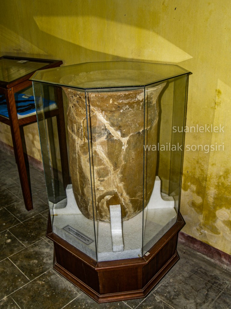 การพบไหหินขนาดใหญ่ ฐานมีการแกะสลักลวดลายรูปกลีบบัวเพื่อบรรจุกระดูกจากเมืองนครปฐมโบราณ ซึ่งเป็นสิ่งที่คล้ายคลึงและร่วมสมัยกับภาชนะบรรจุกระดูกจากเมืองศรีเกษตรของพม่า และน่าจะเป็นของชนชั้นนำในสังคมเช่นเดียวกัน
