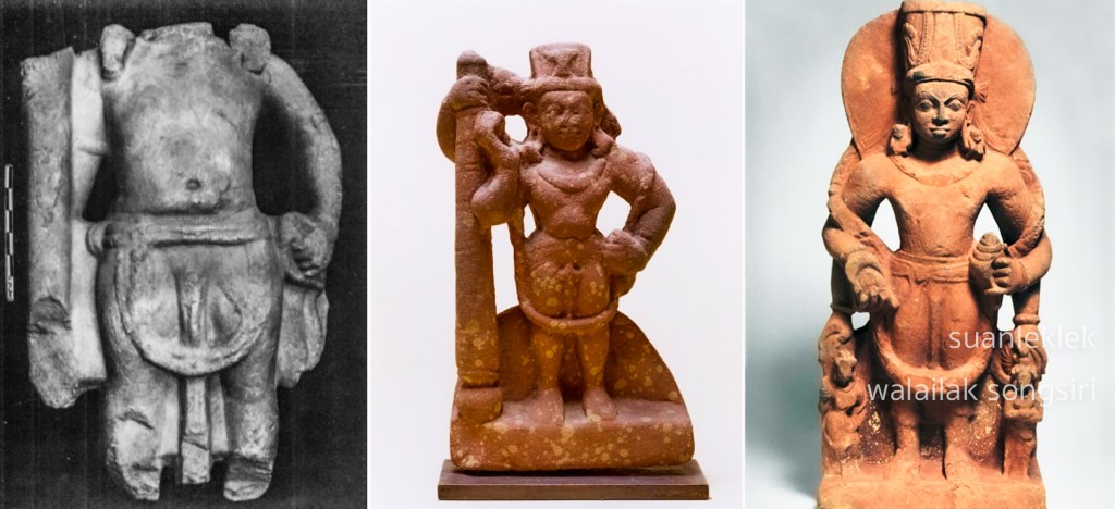 ซึ่งก็น่าจะอยู่ในกลุ่มของพระวิษณุที่แพร่มาจากรัฐตามพรลิงค์และบ้านเมืองในคาบสมุทร ที่สัมพันธ์กับการค้าทางทะเลระยะทางไกลทั้งในเขตสามเหลี่ยมปากแม่น้ำโขงและเมืองท่าภายในที่เกี่ยวข้องกับบ้านเมืองในสหพันธรัฐฟูนัน-ทวารวดีในช่วงพุทธศตวรรษที่ ๑๒