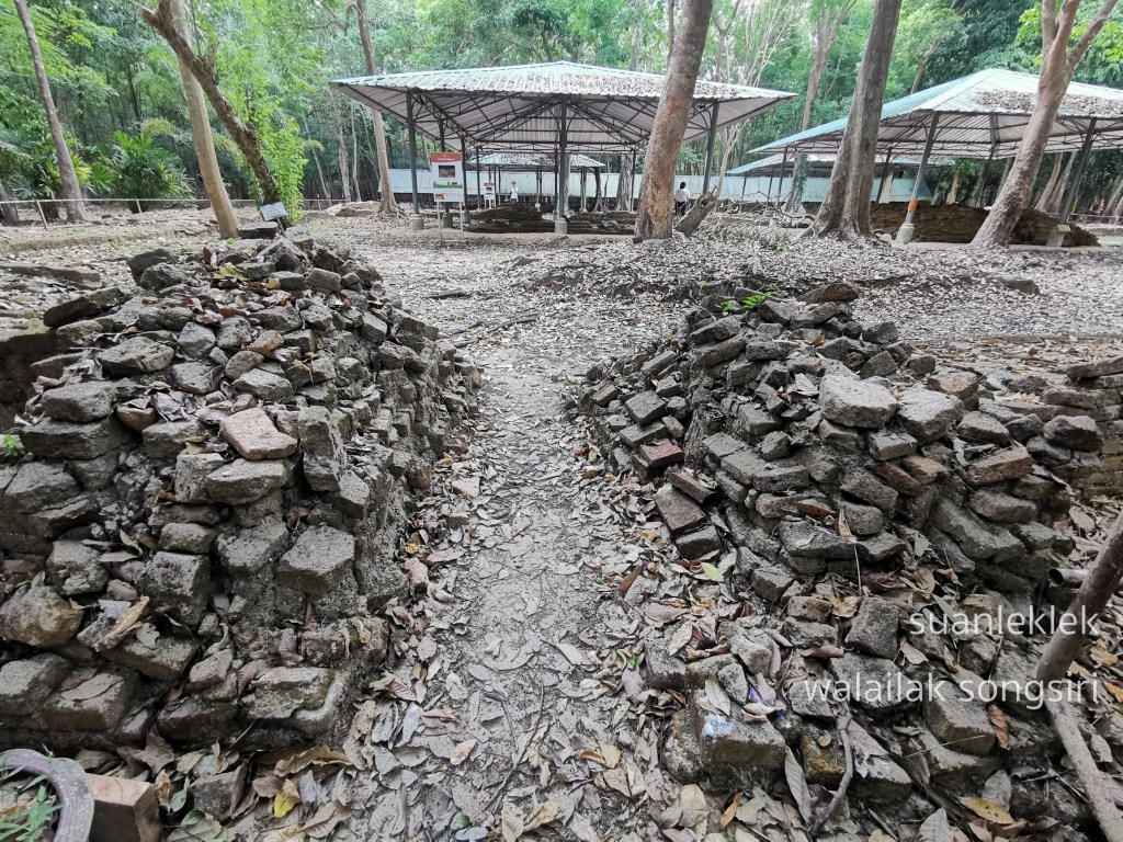 ต่ำจากเมืองพระเวียงมาทางใต้ราว ๓ กิโลเมตร ซึ่งเป็นพื้นที่รองรับเส้นทางข้ามคาบสมุทรจากแถบเมืองจันดีและช่องเขาแก้วมายังลานสกา ไปยังคลองปากนครและออกสู่ปากน้ำชายฝั่งทะเล คลองท่าเรือนี้คงเป็นชุมชนสถานีการค้าสำคัญมาแต่ดั้งเดิม เพราะพบมโหระทึกที่บ้านเกตุกายและเครื่องถ้วยในยุคต่อๆ มาอีกจำนวนมาก รวมทั้งมีกลุ่มชุมชนฮินดูบริเวณสองฝั่งของคลองท่าเรือที่สำคัญ พบโบราณสถานส่วนประกอบของอาคารเทวสถานพวกหินกรอบประตู คานทับหลังที่สลักลวดลาย บัวหัวเสาแท่นฐานแกะประดับรูปบัวทำจากหินแกรนิต และบริเวณวัดเพรงที่อยู่ทางตะวันออกใกล้เชิงเขาหลวงและช่องเขาแก้วก็พบพระวิษณุองค์เล็กถือสังข์ที่สะโพกด้านซ้าย รูปแบบใกล้เคียงกับพระวิษณุที่พบจากวัดศาลาทึง ไชยา และชิ้นส่วนกรอบประตูทำจากหินแกรนิต