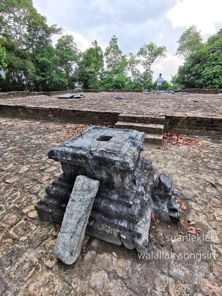 บริเวณลุ่มน้ำคลองสูงใกล้กับปากน้ำที่ท่าศาลา พบกลุ่มอาคารที่น่าจะเคยเป็นเทวสถานมาก่อนที่ ศาสนสถานตุมปัง ปัจจุบันอยู่ในบริเวณของมหาวิทยาลัยวลัยลักษณ์ เป็นอาคารก่ออิฐจำนวน ๔ หลังล้อมรอบด้วยกำแพงแก้วและพบชิ้นส่วนเสากรอบประตูมีลวดลาย พระพุทธรูปสำริดในราวพุทธศตวรรษที่ ๑๘-๑๙ ส่วนบนของเทวรูปที่กลายาเป็นพระโพธิสัตว์อวโลกิเตศวร ส่วนบริเวณเกาะพระวิษณุที่อยู่ไม่ไกลนั้น พบเทวรูปพระวิษณุ ๒ องค์ ขนาด ๖๘ ซม. และ ๕๒ ซม. ที่มีการกำหนดอายุแบบประเมินว่าอยู่ในช่วงพุทธศตวรรษที่ ๑๓