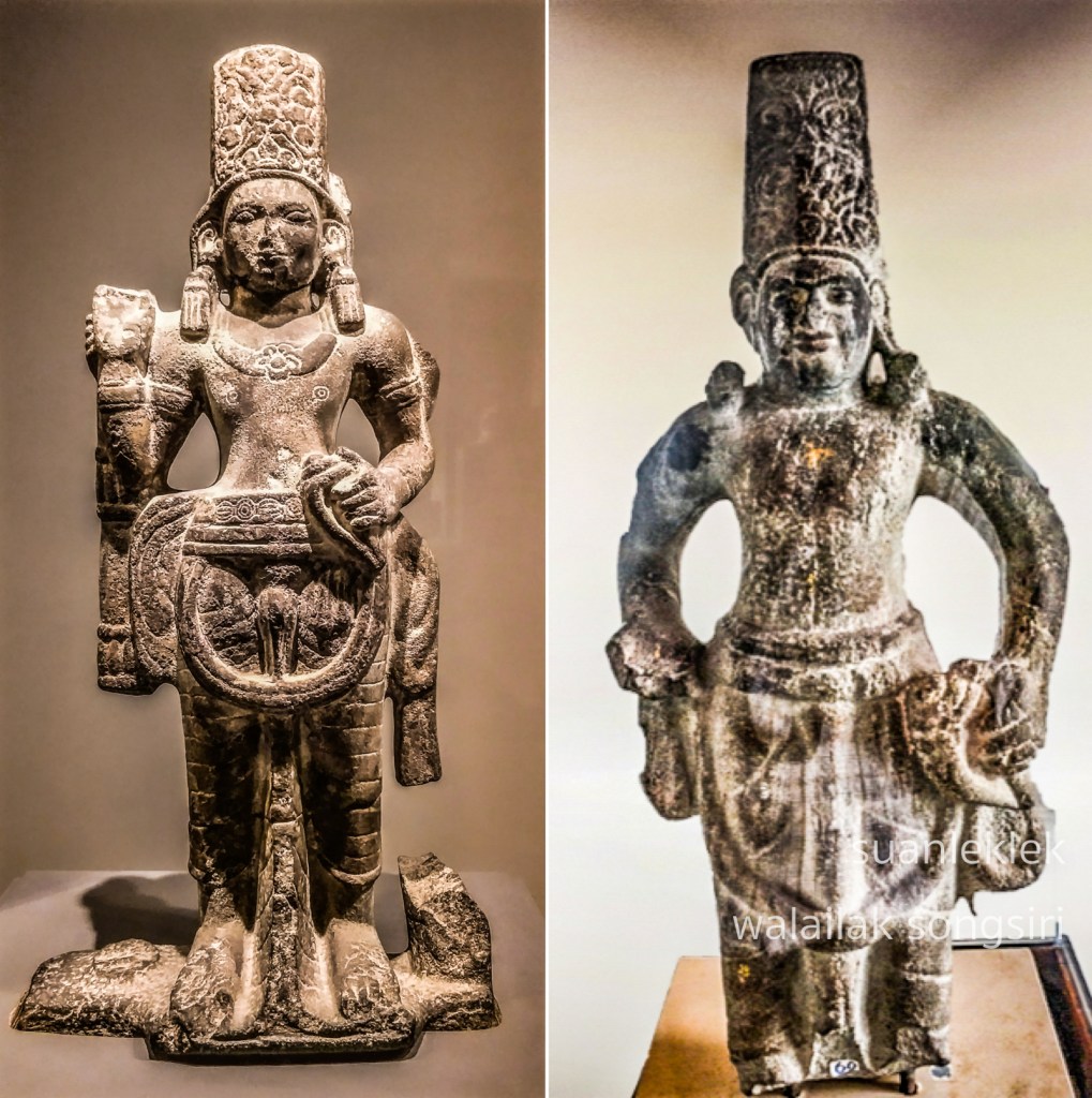 ในกลุ่มเทวรูปที่โดดเด่นและมีจำนวนมากกว่าเทพองค์อื่นในรัฐตามพรลิงค์คือ “พระวิษณุ” ซึ่งมีสี่พระกรโดยปกติแต่จะหักหายไปตามสภาพบ้าง นักวิชาการพิจารณาและลงความเห็นมานานแล้วว่าเทวรูปต่างๆ ที่ปรากฎในคาบสมุทรนั้นทำขึ้นในท้องถิ่น หมายถึงไม่ได้นำมาจากอินเดียแต่อย่างใด และแน่นอนได้รับอิทธิพลจากงานช่างร่วมสมัยหรือจากวัฒนธรรมของบ้านเมืองที่จากมา