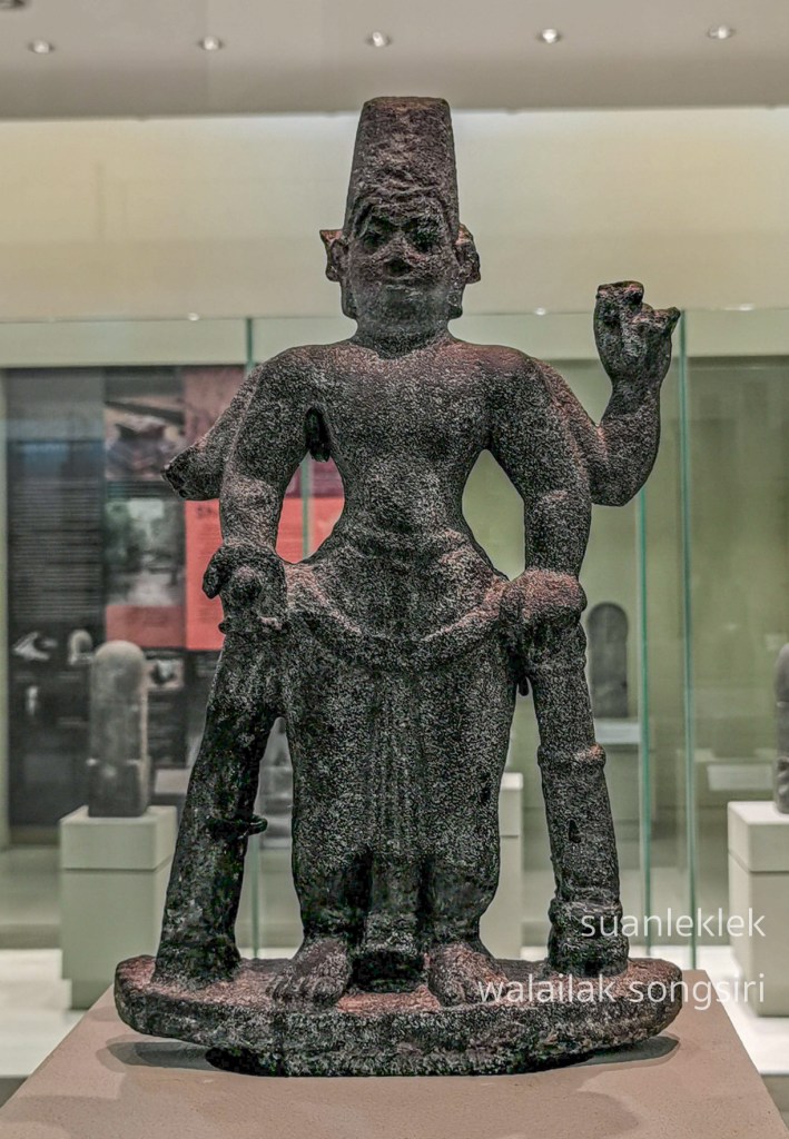 ซึ่งพบ “พระวิษณุพระหัตถ์ด้านซ้ายถือสังข์ที่สะโพกหน้า” องค์ที่เก่าที่สุดที่ไชยารวมทั้ง “มุขลึงค์” ที่มีความคล้ายคลึงกับชิ้นที่พบที่อู่ทองและออกแอว