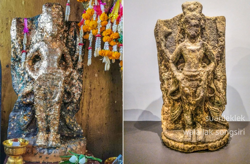 ซึ่งคล้ายกับเทวรูปพระวิษณุที่พบที่เขาศรีวิชัย จังหวัดสุราษฎร์ธานี และพระวิษณุที่อำเภอศรีมหาโพธิ์ จังหวัดปราจีนบุรี พระวิษณุพบที่เวียงสระ สุราษฎร์ธานี และพระวิษณุพบจากสทิงพระ ซึ่งนุ่งผ้านุ่งยาว อายุสมัยน่าจะร่วมกับพระคเนศที่ประมาณอายุราวพุทธศตวรรษที่ ๑๓-๑๔ และพระวิษณุพบจากเทวสถานที่เพชรบุรีทั้งสององค์
