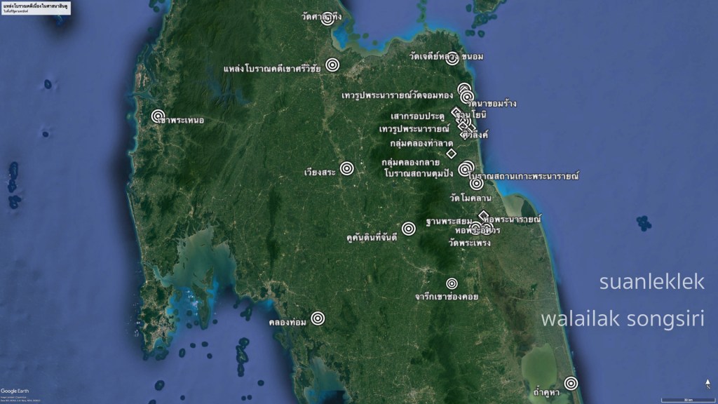 เชิงอรรถ (๑). Stanley J. O'Connor, Jr. Hindu Gods of Penninsular Siam. (pp.14) อ้างถึงข้อมูลของเส้นทางที่ปรากฏและวิเคราะห์ใน Wang Guogwu, The Nanhai Trade: A Study of the Early History of Chinese Trade in the South China Sea: Journal of the Malaysian Branch of the Royal Asiatic Society voLXXXI, 2 (1958), pp.19-22. (๒) Miriam T. Stark & Shawn Fehrenbach. Earthenware Ceramic Technologies of Angkor Borei, Cambodia. ใน Journal of Khmer Studies, 2019 กำหนดอายุเครื่องปั้นดินเผาจากการขุดค้นที่อังกอร์เบอเรยไว้ที่ 500 BCE-200 CE. สืบค้นวันที่ ๑๐ กรกฎาคม ๒๕๖๒. https://www.academia.edu/39765862/Stark_and_Fehrenbach_2019_Earthenware_Ceramic_Technologies_of_Angkor_Borei_Cambodia20190706_33811_1tjdx9p?source=swp_share (๓) Stanley J. O'Connor, Jr. Hindu Gods of Penninsular Siam. (pp.43) (๔) จารึกหลักที่ ๒๓ วัดเสมาเมือง จังหวัดนครศรีธรรมราช คำแปลจากฐานข้อมูลจารึกในประเทศไทย ศูนย์มานุษยวิทยาสิรินธร สืบค้นวันที่ ๑๐ กรกฎาคม ๒๕๖๒ https://db.sac.or.th/inscriptions/inscribe/detail/323 (๕) จารึกหลักที่ ๒๔ จารึกวัดหัวเวียงเมืองไชยา ด้านที่ ๑ https://db.sac.or.th/inscriptions/inscribe/detail/507 และ จารึกวัดหัวเวียงเมืองไชยา ด้านที่ ๒ https://db.sac.or.th/inscriptions/inscribe/detail/509 สืบค้นวันที่ ๑๐ กรกฎาคม ๒๕๖๒